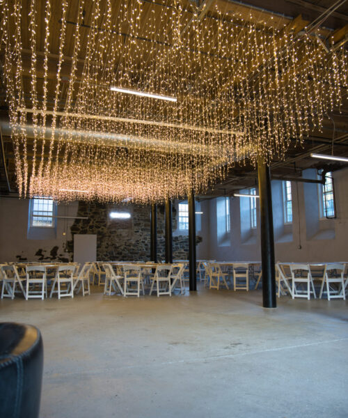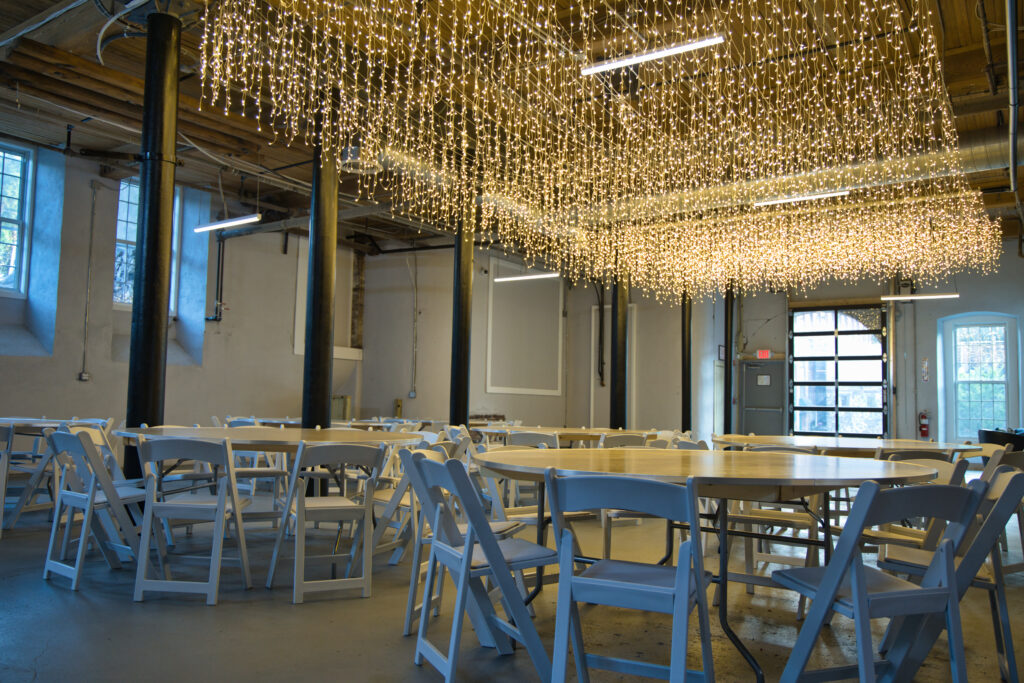 Originally used by Centreville Mill workers, The Tool Room retains subtle nods to its past while embracing a clean, contemporary feel. Concrete flooring adds a sleek modernity, while exposed wood and industrial finishes pay tribute to the building’s legacy. Classically strung overhead lighting adds warmth and ambiance—perfect for evening events and transitions from day to night.